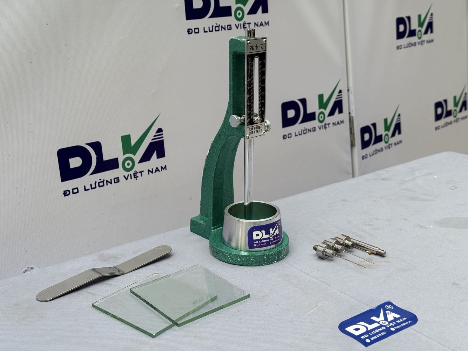 - Dụng cụ Vica ( Kim vica) được sử dụng để xác định thời gian đông kết và độ ổn định thể tích của xi măng bằng tay theo TCVN 6017:2015, ISO 9597:2008, với Kim to được làm bằng kim loại không bị ăn mòn, cấu trúc dạng trụ thẳng, chiều dài hữu ích tối thiểu là 45 mm và đường kính là (10,00 ± 0,05) mm. Tổng khối lượng của bộ phận chuyển động là (300 ± 1) g. Chuyển động của bộ phận được thiết kế theo phương thẳng đứng, ma sát không đáng kể, và trục của bộ phận chuyển động luôn trùng với trục kim to. Khuôn Vica để chứa hồ được làm bằng kim loại. Khuôn có dạng hình nón cụt sâu (40,0 ± 0,2) mm, đường kính trong là (75 ± 10) mm. Kèm theo với khuôn là một tấm kính phẳng có kích thước 10x10cm và dày ít nhất 2,5 mm. - Dụng cụ Vica ( Kim vica) để xác định thời gian bắt đầu đông kết
